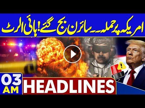 #usattackvenezuela #venezuelanpresident #usirantension #piaprivatization #imrankhan #Pti #9maycase #fieldmarshalasimmunir #pakindiaconflict #internationalnews #pakistannews #trump #america #afghanistan #weatherupdate #goldprice #rain #basant2026 #rajabbutt Dunya News Headlines 03:00 AM | 06 JAN 2025