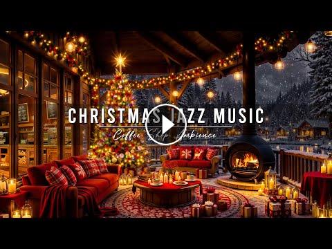 Cozy Christmas Coffee Shop Ambience Warm Christmas Jazz Music with Crackling Fireplace & Snowfall