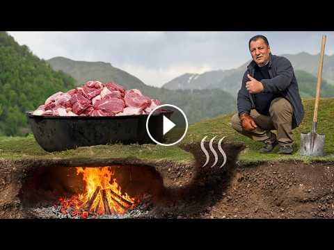 Juicy Beef Steaks on Salt Block! Cooking in the Snowy Mountains of Azerbaijan!
