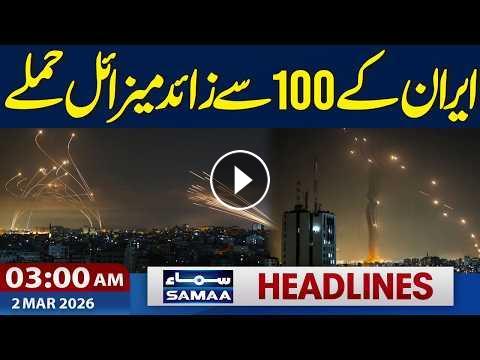 #samaatv #Iran #iranvsisrael #iranunderattack #usattackiran #iranattackonisrael #iranattackgulf #IsraelIran #ayatollahkhamenei #donaldtrump #LiveUpdate #MiddleEastCrisis #IsraelStrike #IranConflict #EmergencyAlert #GlobalTensions #WorldNews #MilitaryAction #ConflictUpdate #NewsLive #SituationReport #YouWillRegretIt #IranianPower #TelAvivIsBurning #IsraelEnemyOfHumanity #IranJustDoIt Iran Launches More than 100 Missile | 3 AM News Headlines | 2 March 2026 | SAMAA TV