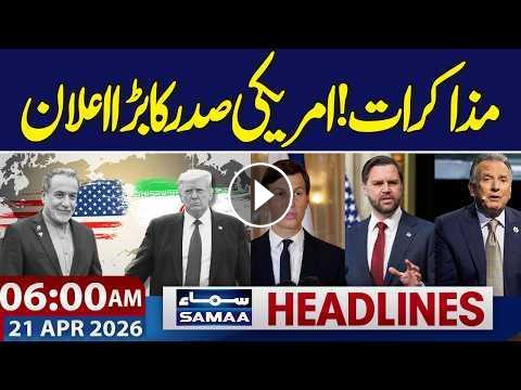 #samaatv #Pakistan #fieldmarshalasimmunir #pmshehbazsharif #IslamabadTalks #PakistanDiplomacy #IranUSTalks #PeaceTalks #IranUSCeasefire #GlobalPeace #BreakingNews #MiddleEastCrisis #PakistanMediation #Islamabad #IranNuclearDeal #Geopolitics #WorldNews #InternationalRelations #StraitOfHormuz #Diplomacy #PakistanRole #USIranRelations #pakistanforeignpolicy #jdvance #trump #abbasaraghchi #mojtabakhamenei #iranusconflict #saudiarabia Iran-US talks! US President's big announcement | 6 AM News Headlines | SAMAA TV