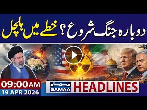 #samaatv #usiranwar #Pakistan #fieldmarshalasimmunir #pmshehbazsharif #IslamabadTalks #PakistanDiplomacy #IranUSTalks #PeaceTalks #IranUSCeasefire #GlobalPeace #BreakingNews #MiddleEastCrisis #PakistanMediation #Islamabad #IranNuclearDeal #InternationalRelations #StraitOfHormuz #Diplomacy #PakistanRole #USIranRelations #pakistanforeignpolicy #jdvance #trump #abbasaraghchi #mojtabakhamenei #iranusconflict #saudiarabia #NorthKorea #KimJongUn #MissileTest #CruiseMissile #AntiShipMissile #BallisticMissile Iran US War | Trump Warns Iran | 9 AM News Headlines | 19 April 2026 | SAMAA TV