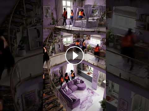 Witness an incredible architectural transformation as a dilapidated, moss-covered building is restored into a stunning purple-themed luxury home. Watch a dedicated crew work their magic, clearing away years of neglect and debris to reveal a polished, three-story masterpiece. From the overgrown ruins to the final sleek and modern aesthetic, every second showcases the satisfying power of a complete renovation.
