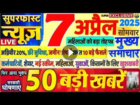 Today Breaking News ! आज 7 अप्रैल 2025 के मुख्य समाचार बड़ी खबरें PM Modi, SBI, weather, Bank, CAB , Nonstop News | आज की ताजा ख़बरें | News Headlines | 7 april 2025 | Fatafat khabren || LIVE News | News Headlines | today news | Fatafat khabren | News in hindi | govnews # 7_april_2025 | #Today_Breaking_News | #मुख्य_समाचार | #Today_News_headlines | # 7_april_2025 #modi #video #watch #मौसम #विभाग #weather आज 7 april 2025 का मौसम