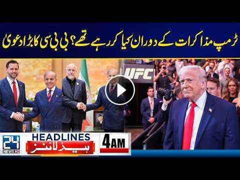 US-Iran Peace Talks Ends - What Was Trump Doing During Talks? - BBC Big Claim - 4am News Headlines - 24 News HD24 News HD Is One Of The Leading News Channels Of Pakistan Bringing You The Latest Current Affairs From Pakistan And Around The World. Live National Assembly ,Senate Session And Current Affairs.