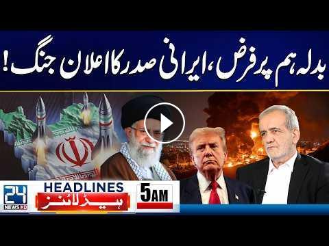 US-Israel Iran War - Iranian President Declares War! - 5am News Headlines - 24 News HD24 News HD Is One Of The Leading News Channels Of Pakistan Bringing You The Latest Current Affairs From Pakistan And Around The World. Live National Assembly ,Senate Session And Current Affairs.