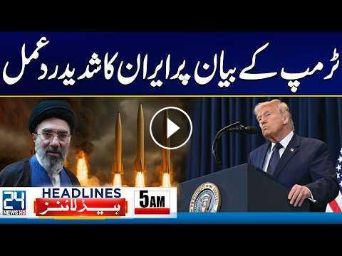US-Israel Iran War Tensions - Iran Reacts Strongly to Trump’s Statement - 5am News Headlines - 24 News HD24 News HD Is One Of The Leading News Channels Of Pakistan Bringing You The Latest Current Affairs From Pakistan And Around The World. Live National Assembly ,Senate Session And Current Affairs.