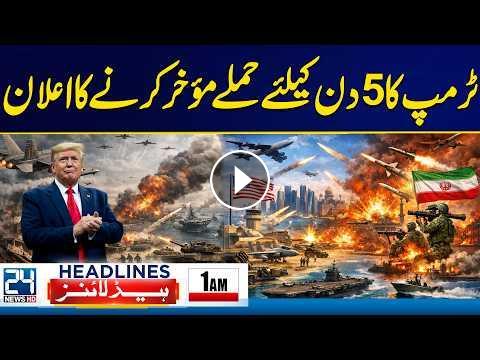 US - Israel Iran War - Trump Delays Strikes on Iran’s Power Plants for 5 Days - 1am News Headlines - 24 News HD24 News HD Is One Of The Leading News Channels Of Pakistan Bringing You The Latest Current Affairs From Pakistan And Around The World. Live National Assembly ,Senate Session And Current Affairs.