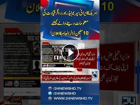 US Offers $10 Million Reward for Information on Iran’s Supreme Leader - Breaking News - 24 News HD24 News HD Is One Of The Leading News Channels Of Pakistan Bringing You The Latest Current Affairs From Pakistan And Around The World. Live National Assembly ,Senate Session And Current Affairs.